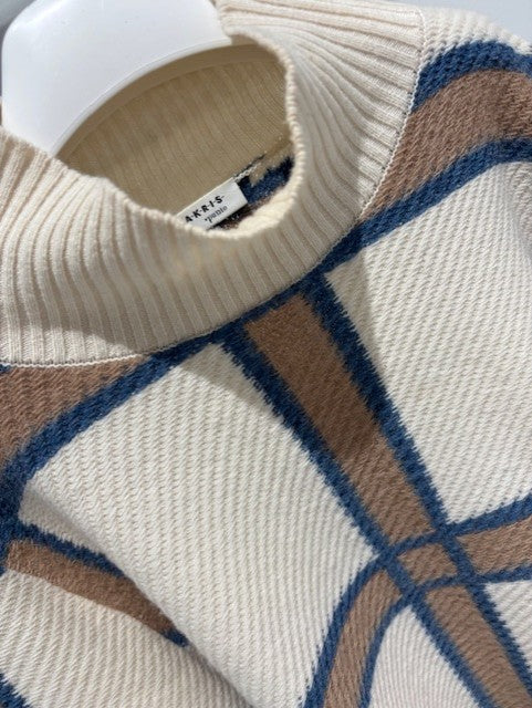 Sweater - Cream/Blue/Camel