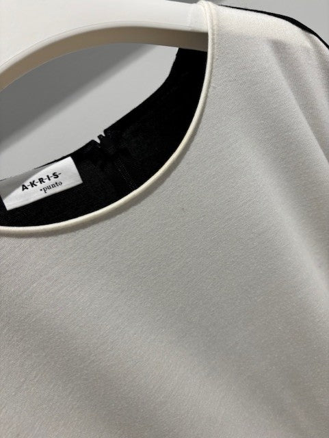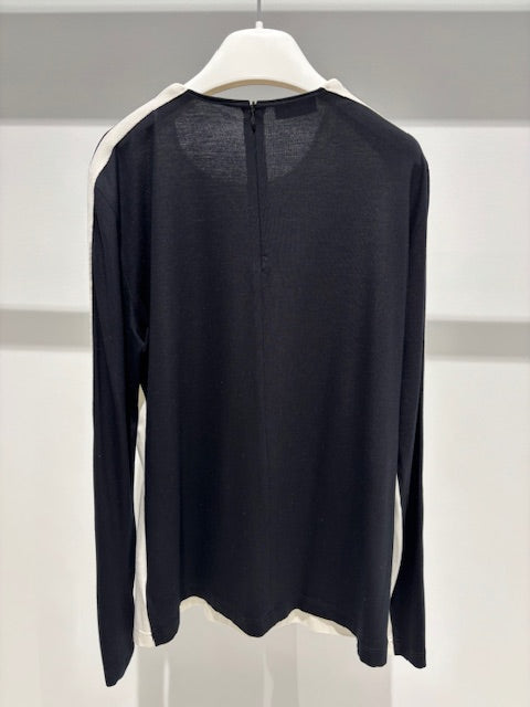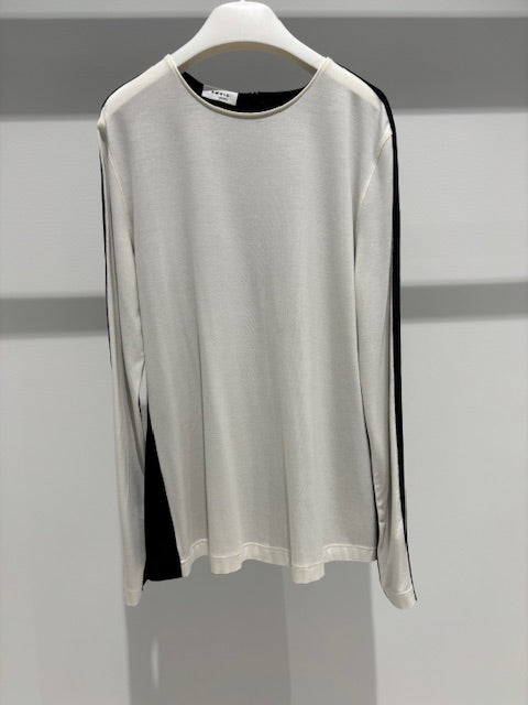 Soft modal top by Swiss designer Akris Punto with a two-toned front and back. The look is completed by a contrasting racing stripe on the sleeve.