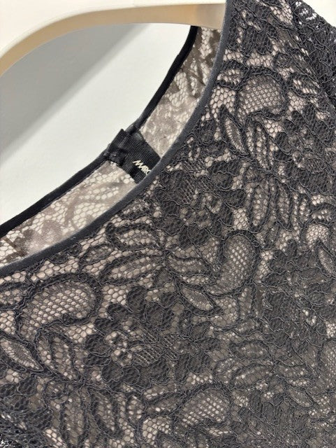 Dress by Marc Cain with a lace top and sleeves and a tweed boucle skirt.